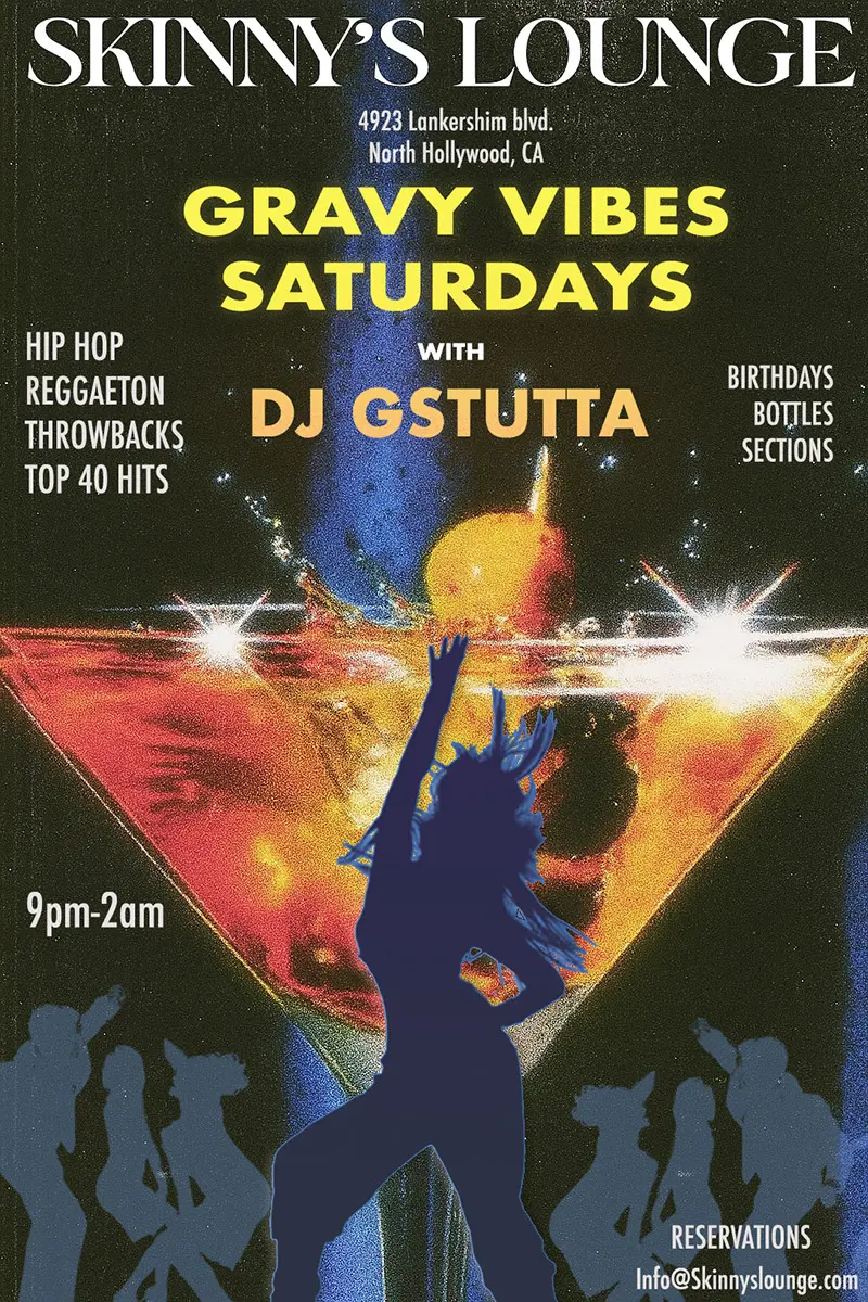 Gravy Vibes Saturday at Skinny’s Lounge – North Hollywood’s best hip-hop night! Dance to top DJs, enjoy great drinks, and vibe all night in the NoHo Arts District.